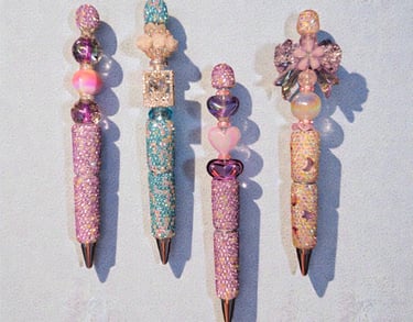 Handcrafted beaded pens made with crystal, acrylic, and glass beads—perfect gifts that bring a little sparkle to every day.